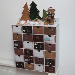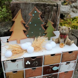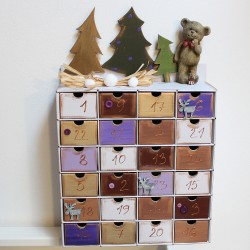 Hledáte originální adventní kalendář pro děti? Méďa v zimním lesíku udělá určitě radost dětem i dospělým a navíc krásně dozdobí váš interiér. Po vánocích lze kalendář využít jako šperkovnici nebo na různé poklady.
