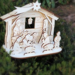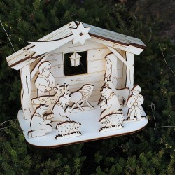 Je vyrobený z kvalitní topolové překližky tl. 4 mm, bez povrchové úpravy. Jednotlivé díly jsou gravírované a vyřezané laserem. Výřezy lze vybarvit pastelkami, vodovými nebo akrylovými barvami. Pokud se rozhodnete mít betlém barevný, vybarvěte díly ještě před složením. Betlém je zabalený do kartónové dárkové krabičky, proto je vhodný jako dárek pro kteréhokoliv člena rodiny či přátele, nebo jako originální firemní dárek.