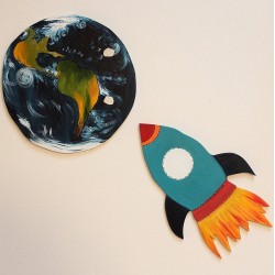 Tato dekorace rozveselí pokojíčky, čekárny nebo zdi mateřských školek. Raketa je vyřezaná z 6mm překližky, namalovaná a přelakovaná.