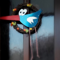 Tato jarní dekorace veselého ptáka tukana rozveselí vstupní dveře nebo také pokojíčky, čekárny a zdi mateřských školek. Pták je vyřezaný z 6mm překližky, namalovaný a přelakovaný.