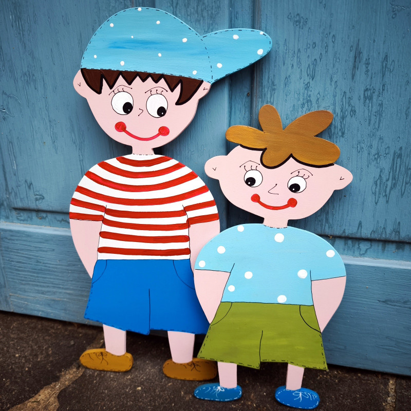 Rozměry : malý kluk 40cm výška, velký kluk 50 cm výška