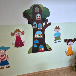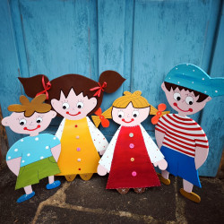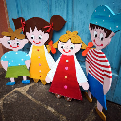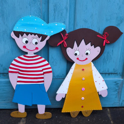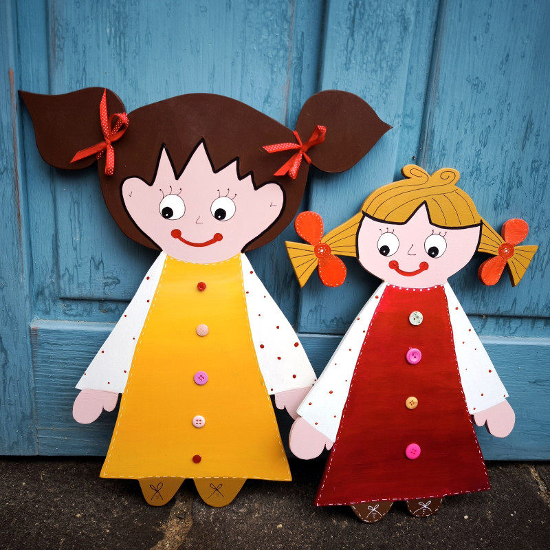 Tato dřevěná nástěnná dekorace postaviček holčiček ve dvou velikostech rozveselí dětské pokojíčky, čekárny nebo zdi mateřských školek.