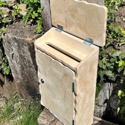 Tato schránka na dopisy je ponechána přírodní a je určena k vlastnímu tvoření. Můžete ji pomalovat akrylovými barvami, dozdobit mozaikou nebo jen přelakovat venkovním lakem.
