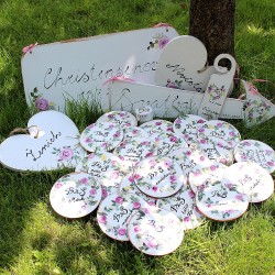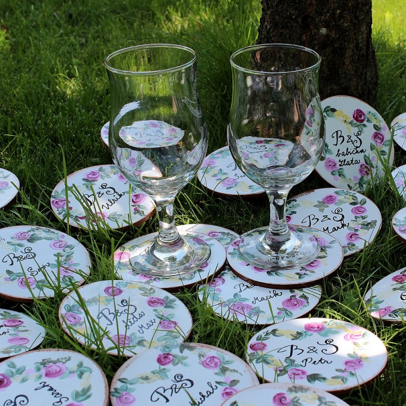 Podtácky z překližky jsou nejen pěknou svatební dekorací, ale zároveň zůstanou krásnou vzpomínkou pro svatební hosty. Text (jména nebo cokoliv jiného) dopíšeme dle přání.