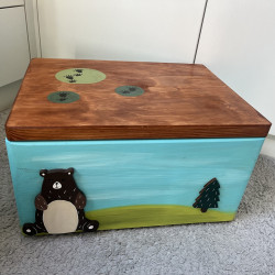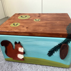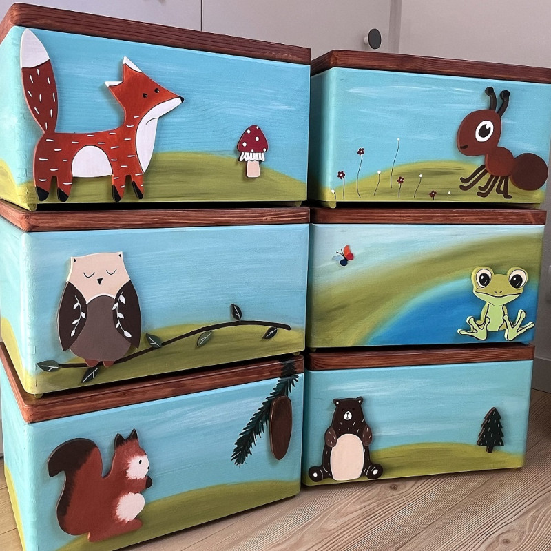 Dřevěná truhla na hračky zvířátka v lese