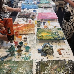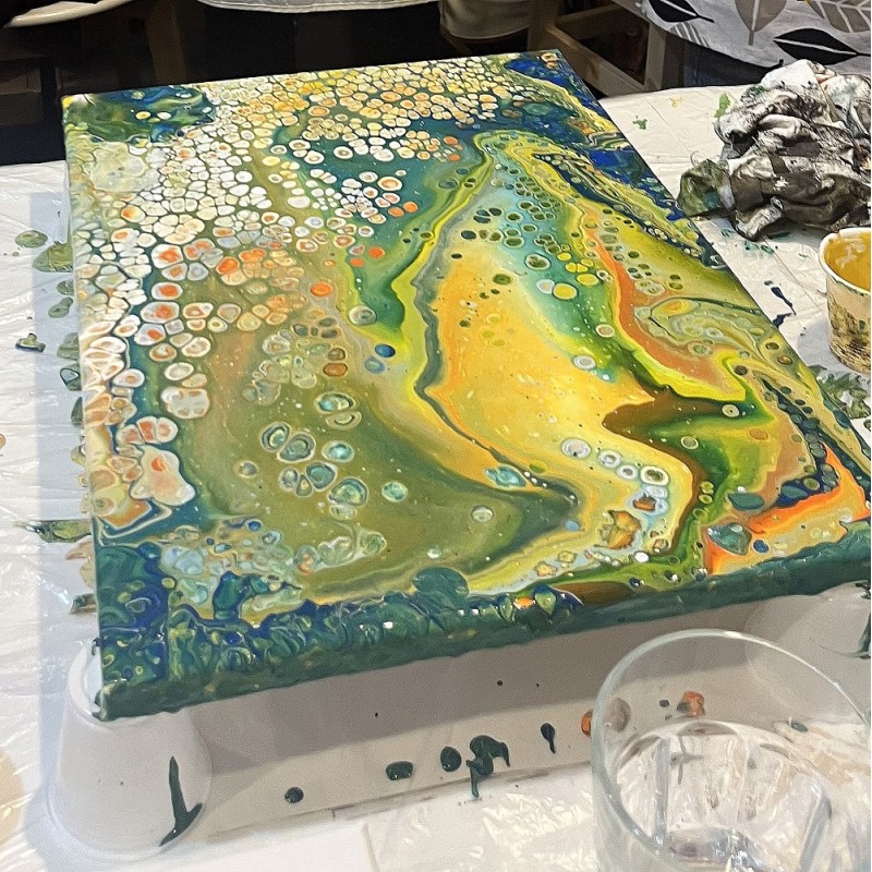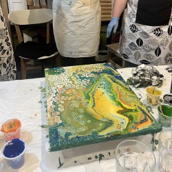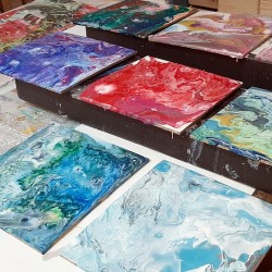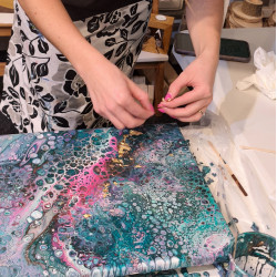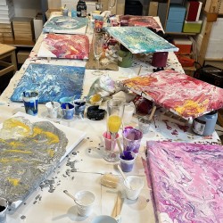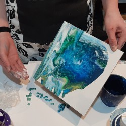 Ukážeme vám velmi zábavnou a kreativní techniku akrylového lití. Acryl pouring je kouzelná technika, při které se vzory a barvy neustále mění. Na kurzu se naučíte, jak vyrábět tyto živé obrazy a odnesete si vlastní dílo domů. Upozorňujeme, že díky velkému nánosu barev obrazy schnou cca 3 dny, proto vám obraz můžeme následně poslat jako křehký k vám domů nebo si jej můžete vyzvednout v následujících dnech.