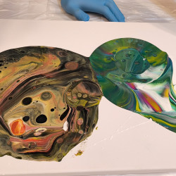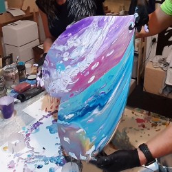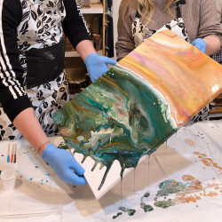 Acrylic pouring neboli akrylové lití je výtvarná technika dechberoucích abstraktních obrazců a překvapivých efektů díky tekoucí barvě. Naši účastníci kurzu označili tuto techniku jako zázrak, neskutečný zážitek, nečekané překvapení.