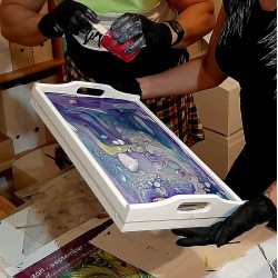 Na kurzu se naučíte, jak vyrábět tyto živé obrazy a odnesete si vlastní dílo domů. Upozorňujeme, že díky velkému nánosu barev obrazy schnou cca 3 dny, proto vám obraz můžeme následně poslat jako křehký k vám domů nebo si jej můžete vyzvednout v následujících dnech.