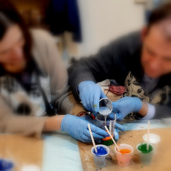 Můžete si vybrat, zda si namalujete společný obraz na plátno nebo každý své dílo.