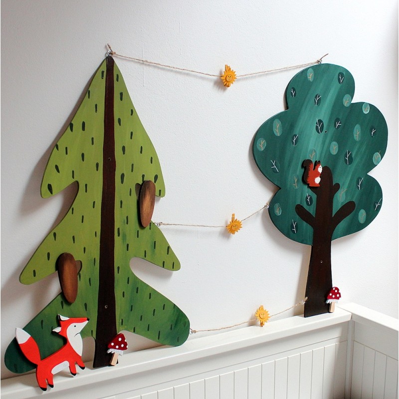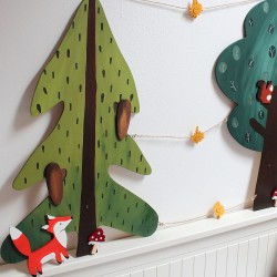 Do dětských pokojíčků s lesní atmosférou jsme nachystali celou sbírku krásných doplňků, které vám budou dohromady krásně ladit. Vyrábíme například nábytkové úchytky s motivy lesních zvířátek, úložné boxy do Kallax regálů, dětský metr na zeď, dřevěné fotoalbum s motivem lišky a jiné kouzelné dekorace.