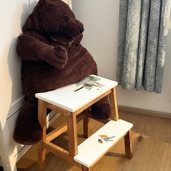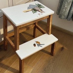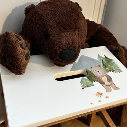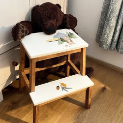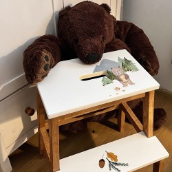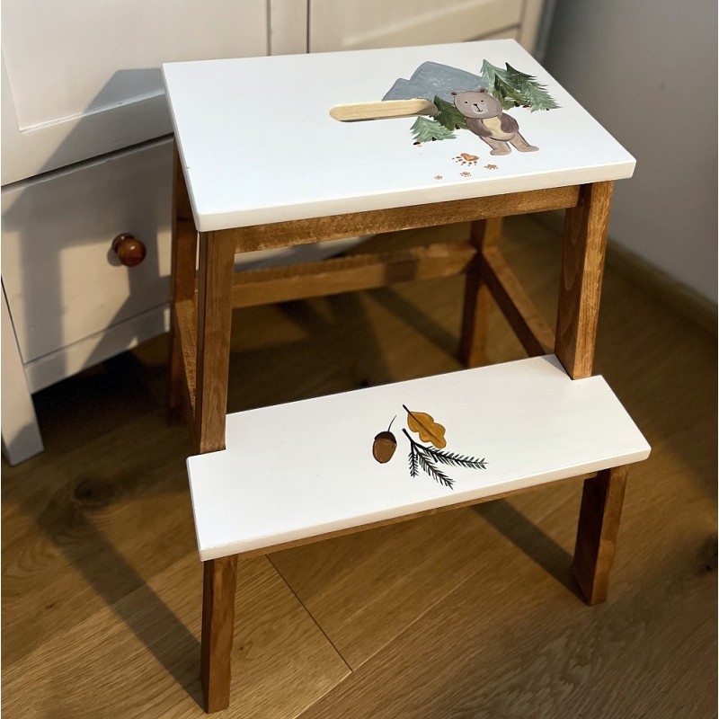 Dřevěné schůdky jsou malované akrylovými barvami a jsou přelakované pro snadné otírání. Lesní motiv s medvědem lze na přání změnit. Napište nám.