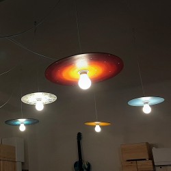 Stropní svítidlo z pevné překližky je malované motivy heřmánku. Vytváří ideální dekoraci, která v interiéru působí neobvykle a kreativně.