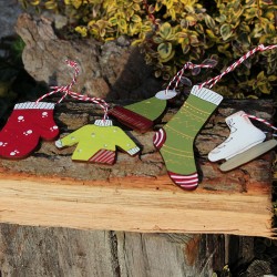 Dekorace nejen na vánoční stromeček jsou vyřezané z překližky, malované, patinované a přelakované. Zavěšené na zdobeném provázku.