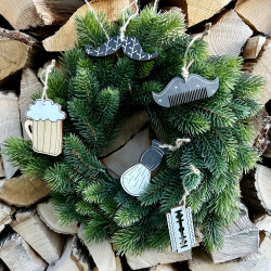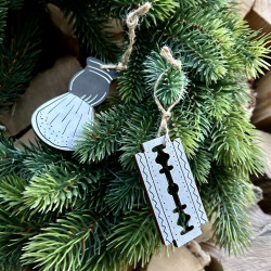 Dekorace nejen na vánoční stromeček s elegantními motivy žiletky, piva, holící štětky, knírku a hřebene na vousy. I muži si mohou užívat zdobení stromečku!