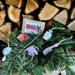 Pro muže jsme navrhli originální vánoční ozdoby v sadě barber.