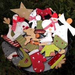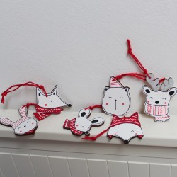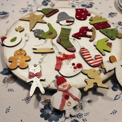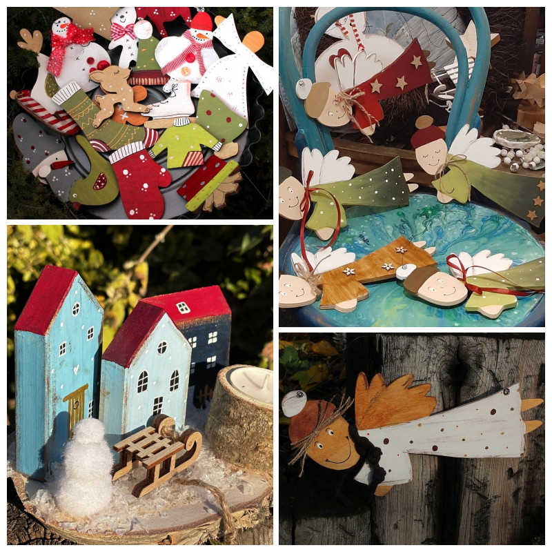 - 5 ks ozdob vyřezaných z překližky (kdo stihne, tak si může ještě přikoupit jiné výřezy a namalovat). Výběr ozdob je veliký, od různých zvířátek tradičních i moderních po kuchyňské náčiní, zimní a vánoční tematiku apod.