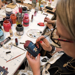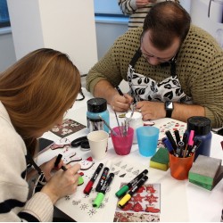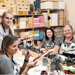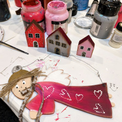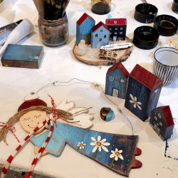 Vše budeme malovat profi akrylovými barvami. Ukážeme vám různé typy na zdobení, malování či patinování. Každý účastník kurzu si odnese sadu ozdob na vánoční stromeček, malovaného andělíčka a domečky.